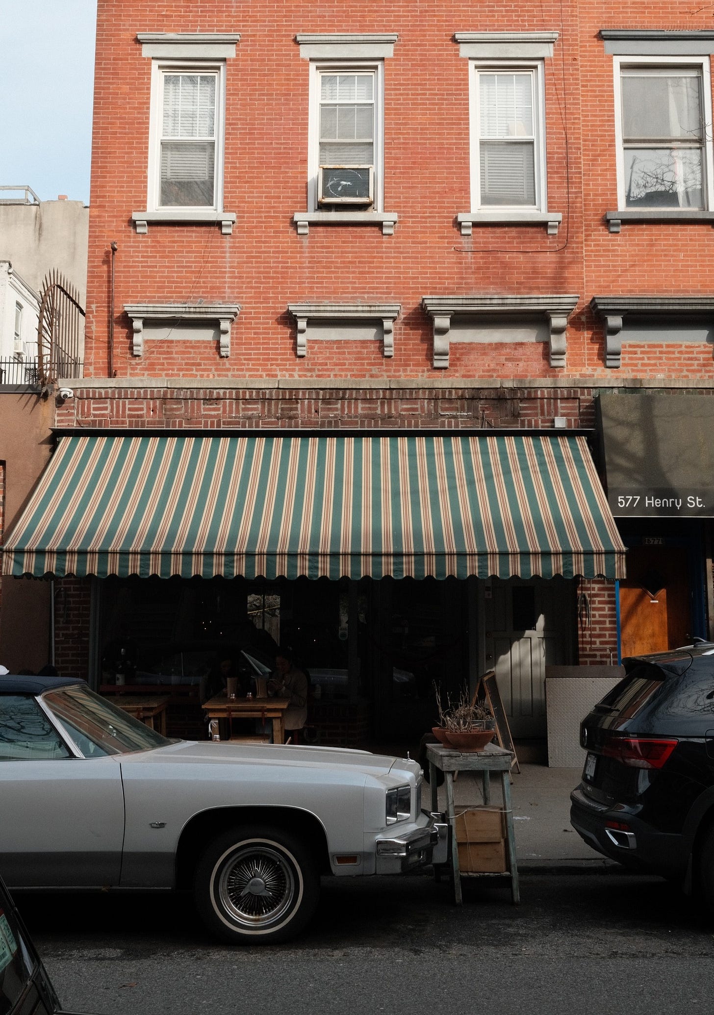 It was a perfect fall day in Carroll Gardens. The trees had mostly shed; the leaves that remained were amber and crisp. A parade of nannies walking their kids home from school passed the line by, serving light judgment about our choice of afternoon activity.