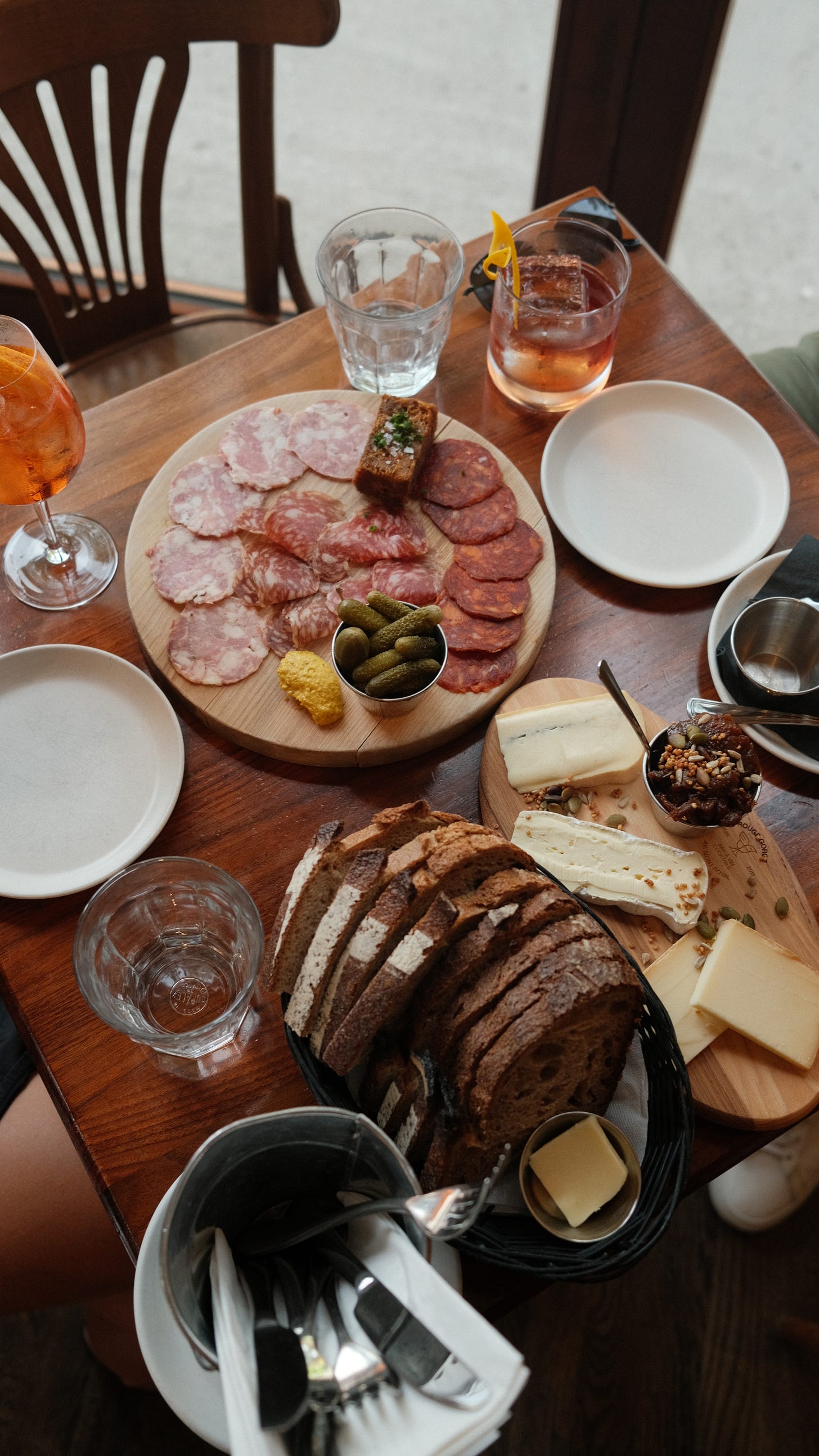 Chacuterie feels a little like a layup. It’s the timeless European classic, and nowadays the heartbeat of every suburban housewives book club. When it’s shitty, it’s still cheese and crackers. When it’s great, it’s the foundation of legendary aperitivo hours. There are a million wine bars I could choose from that have a bang-up board, but Rouge Gorge is a standout amongst them. A perfect, sunny room in Montreal’s charming Mont Royal neighborhood, they’re serving up a thoughtfully curated and prepared selection of goods, best paired with a beverage involving Campari.