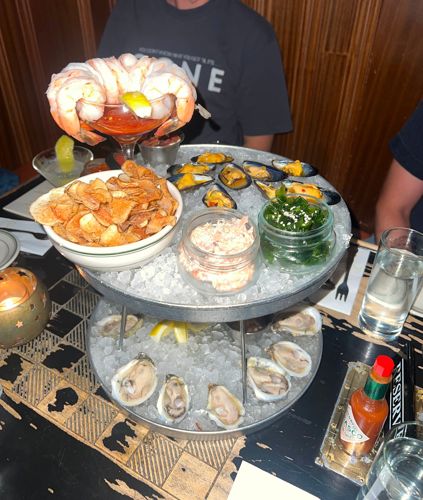 Queen Mary, my 2024 “Bar of the Year” winner, took home the title for a multitude of reasons, one of which is their idyllic snack menu. Peanuts, olives, whitefish dip, cheese & charcuterie, and lots of conservas — humble but great, and importantly taking the backseat to their stellar cocktail program. On Sunday and Monday, though, their snack offering gets a little more prominent. I usually get a overwhelmed (and outpriced) by opulent seafood towers — but Queen Mary’s take is surprisingly approachable and accessibly priced. Ramekins of fish dip, seaweed salad, and trout roe come along with oysters, mussels, shrimp cocktail, and a pile of crunchy chips. With the best martini in Chicago in hand — or a “navy strength” old fashioned if you’re feeling bold — you’ll be able to really lean into a nautical night in Wicker.