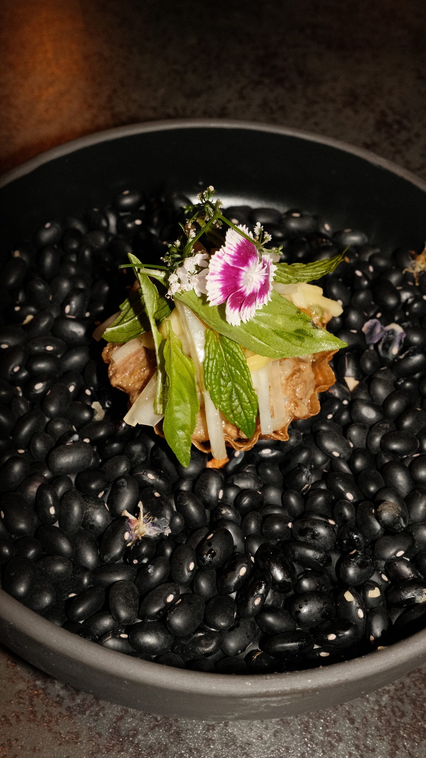 Reflecting on the ten or so dishes, the Thai Tartlet edges out the rest. Crispy eggplant is packed into a buttery tart shell, layered with strips of bright papaya and caramelized sambal. The tartlet comes with a cup of zesty, spicy coconut milk broth meant to be sipped between bites. This punchy broth was the first of a few holy shit moments throughout the dinner.