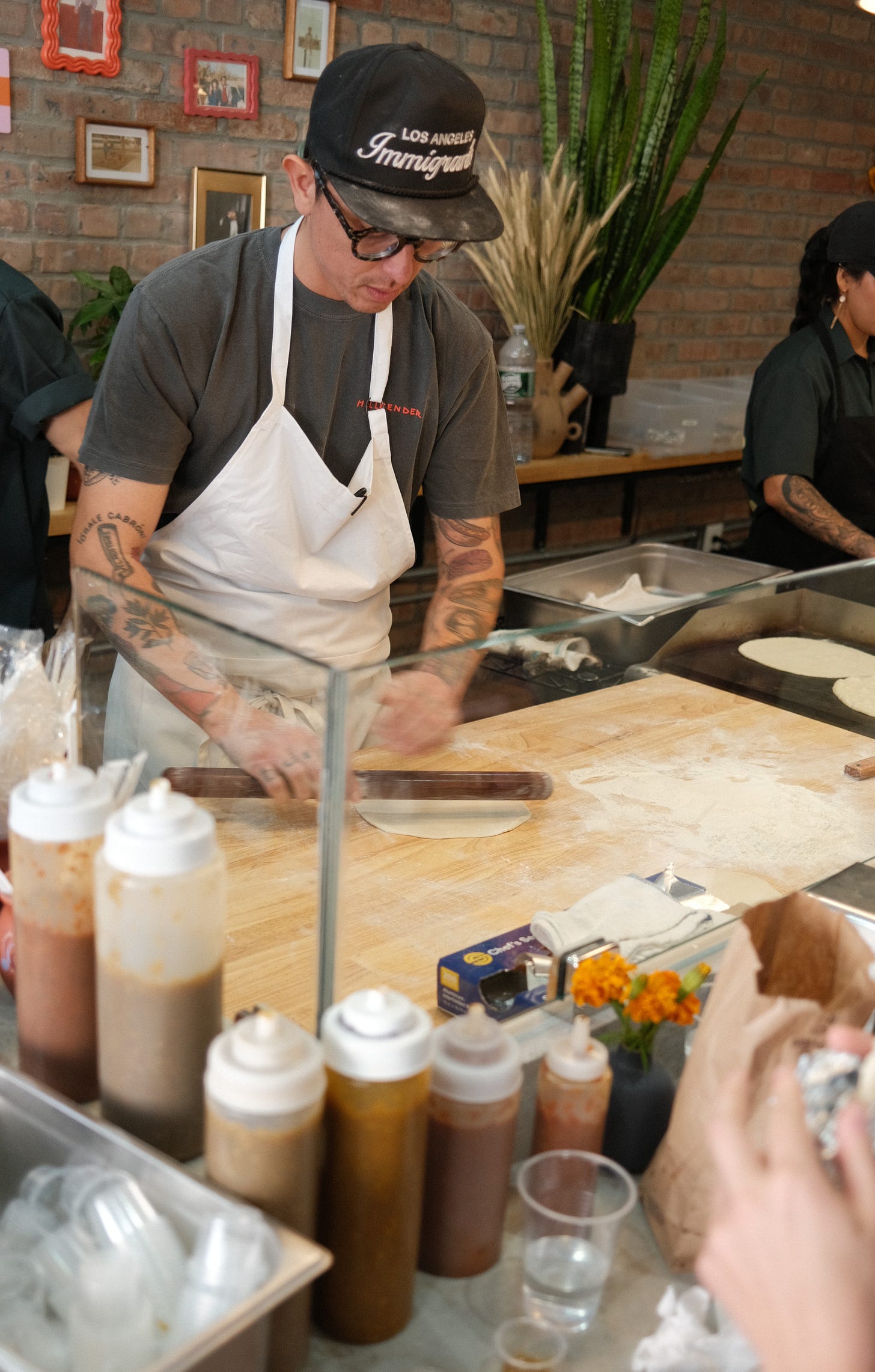 Juarez has been making the digital rounds for their hand-rolled-to-order flour tortillas, filled with one of four stewy options: guajillo-marinated pork; brisket & yukons in tomatillo salsa; pasilla–morita mole braised chicken; or pinto beans with chihuahua cheese. The tortilla is heated on the flattop until barely crisp — it’s thick enough to support the saucy fillings, with an unmistakable chew.
