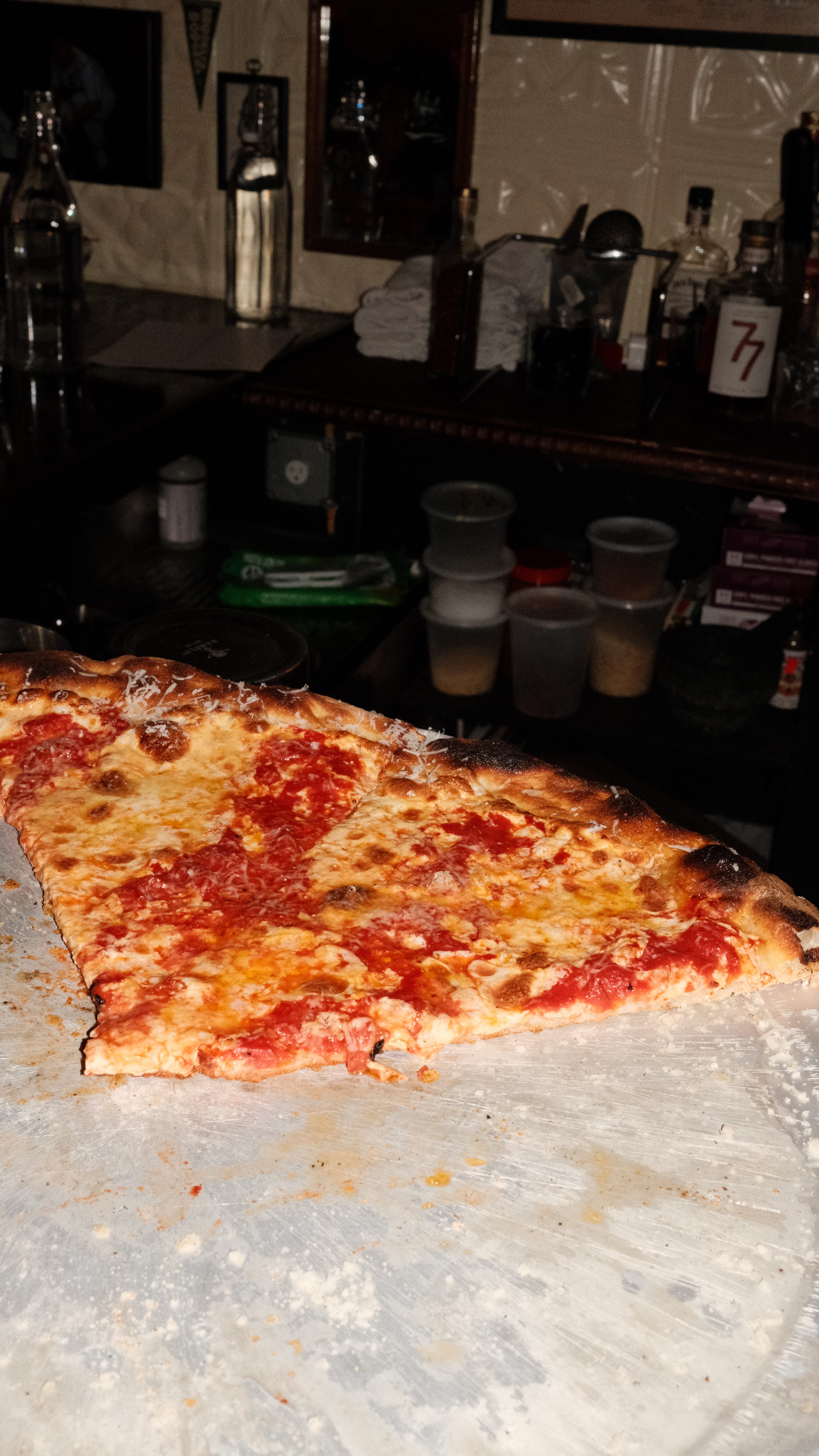 Before diving in, I’d watch my dad lift and rotate the slices — studying them, inspecting the char, trying to deduce what combination of flour, water, and yeast produced such a crisp-yet-chewy bite on these unmistakably thin pies.