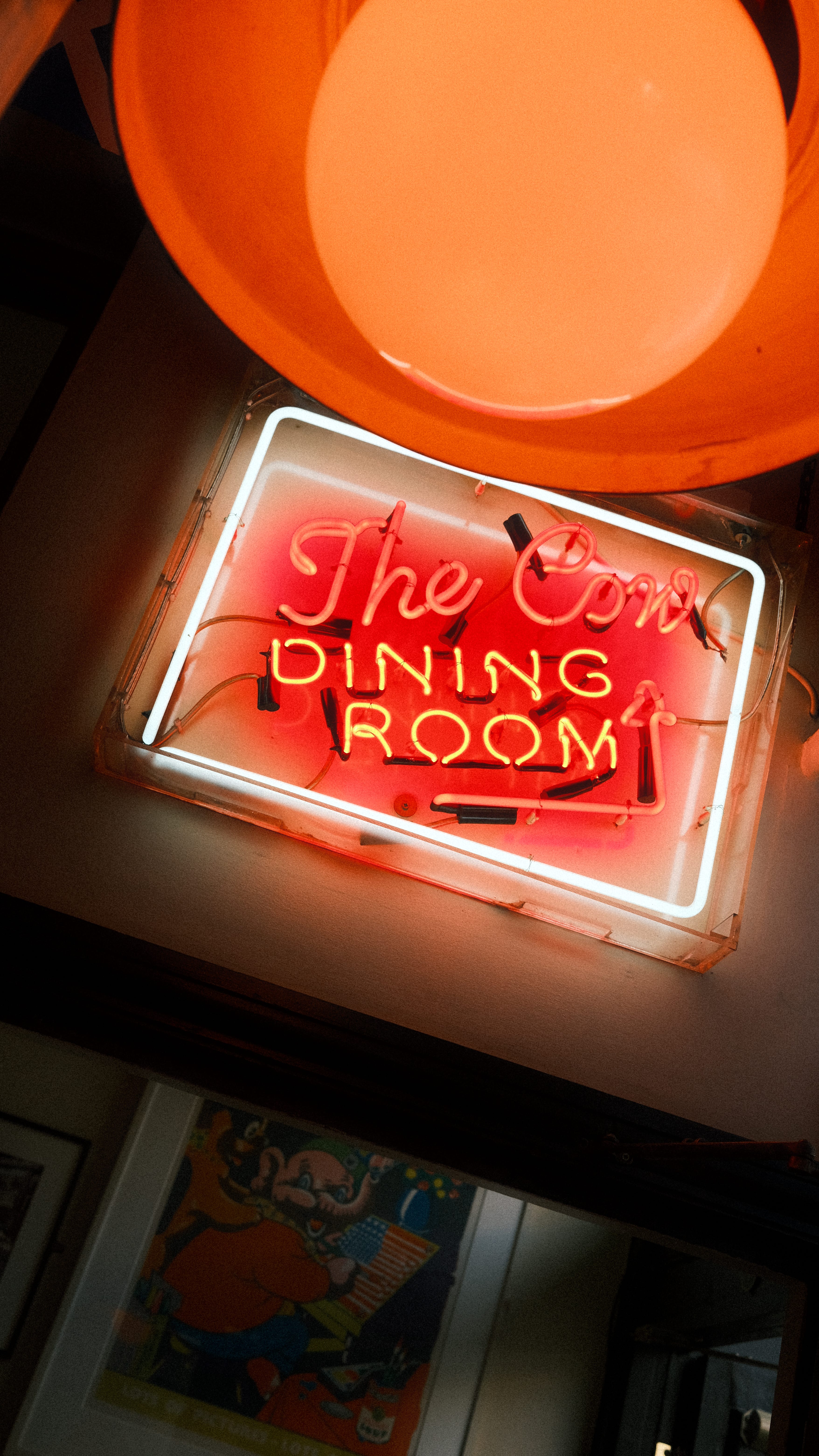 The interior is charmingly chaotic. Menu specials are written on chalkboards all over the walls (and the ceiling!). Cheeky posters and mismatched furniture fill the room — easy to miss compared to the enormous, psychedelic fever-dream mural of langoustines wearing top hats riding fish through the hills that adorns the main wall. The Cow is kooky, there’s no other way to describe it. The pub’s motto is emblazoned somewhere among the madness: “Eat Heartily and Give the House a Good Name.”