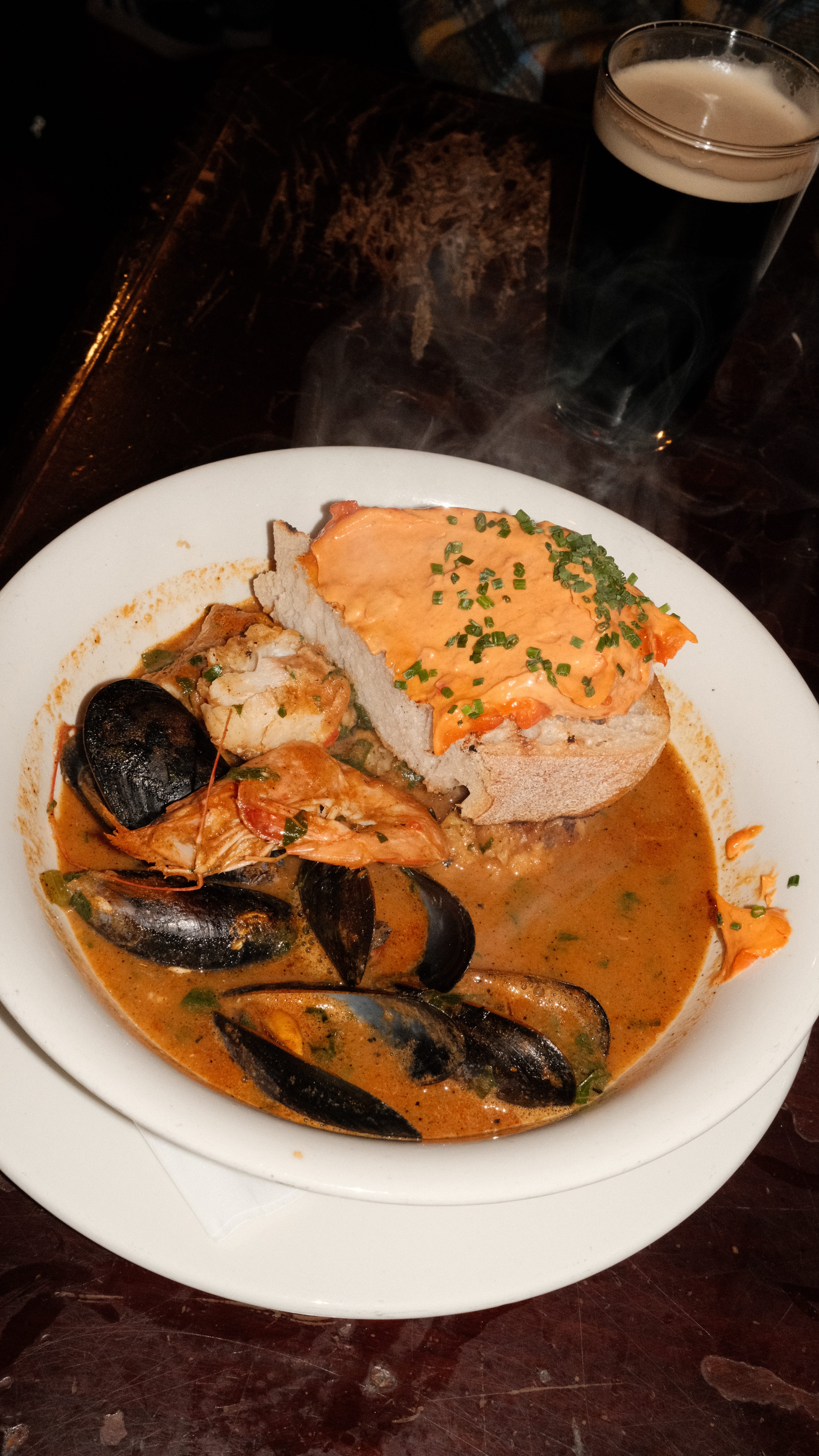 Sat at a communal five-top with a crew of locals straight out of central casting, I snacked on a pint of prawns with a smear of aioli and a lemon wedge, before being encouraged to indulge in a hearty bowl of fish stew with a smattering of sriracha mayo. I was not led down a bad path.