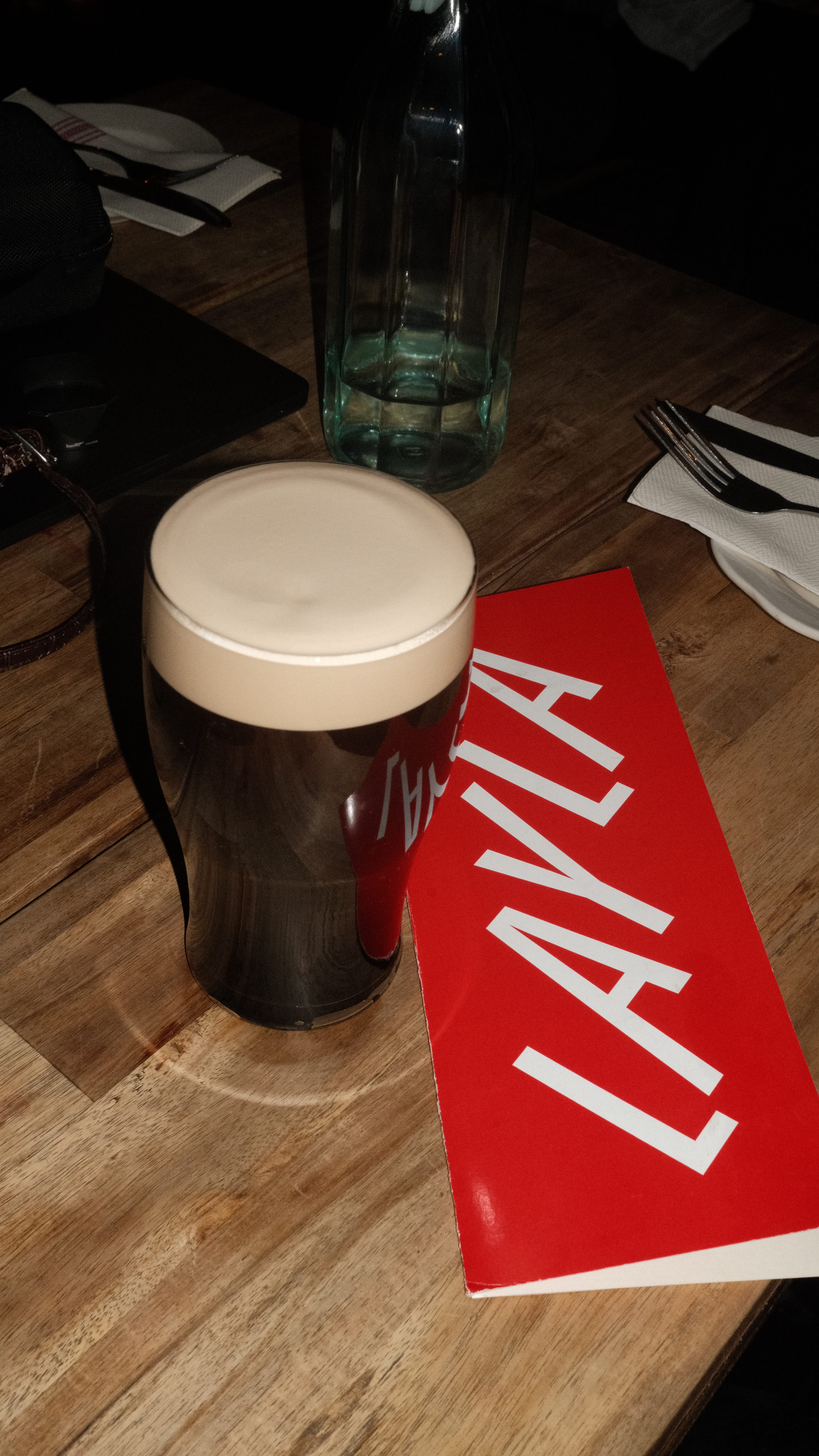 Layla is across the street and two blocks down. It’s the kind of bar you wish you had on your corner. Dark wood, brick, maroon tile, cozy nooks with comfortable seating — and sun-soaked when there’s sun to soak. The back patio is wonderful, although definitely not right now. One of the owners, Sam, is a lovely Aussie guy. He’s soft-spoken, genuine, and clever. A disco ball hangs in the corner of the room. “We threw a rage-ah for New Year’s,” Sam explains. “I’m still feelin’ it, haven’t taken that bad boy down yet.” One of his co-owners is Irish and has Layla’s pint program dialed in. I stand by it: it’s the most slept-on Guinness in town.