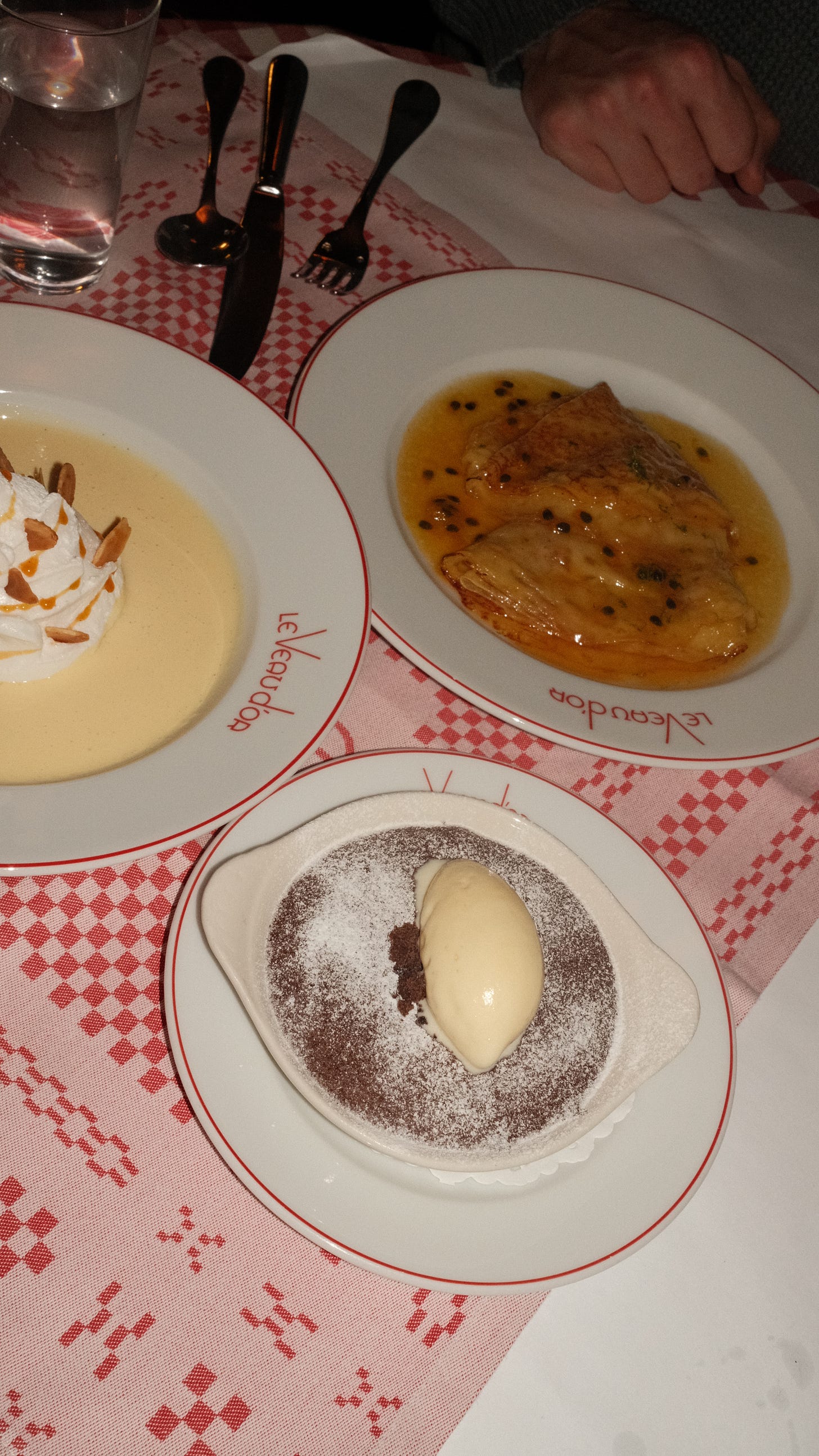 Dinner is prix fixe: an appetizer, an entrée, a vinegary green salad intermission, and dessert. This might sound straightforward, but it made for rather challenging decisions. Our server was kind and eager to help — not only translating the menu written in French, but describing each of the 30 dishes in a beautiful, song-like recital that brought total clarity.