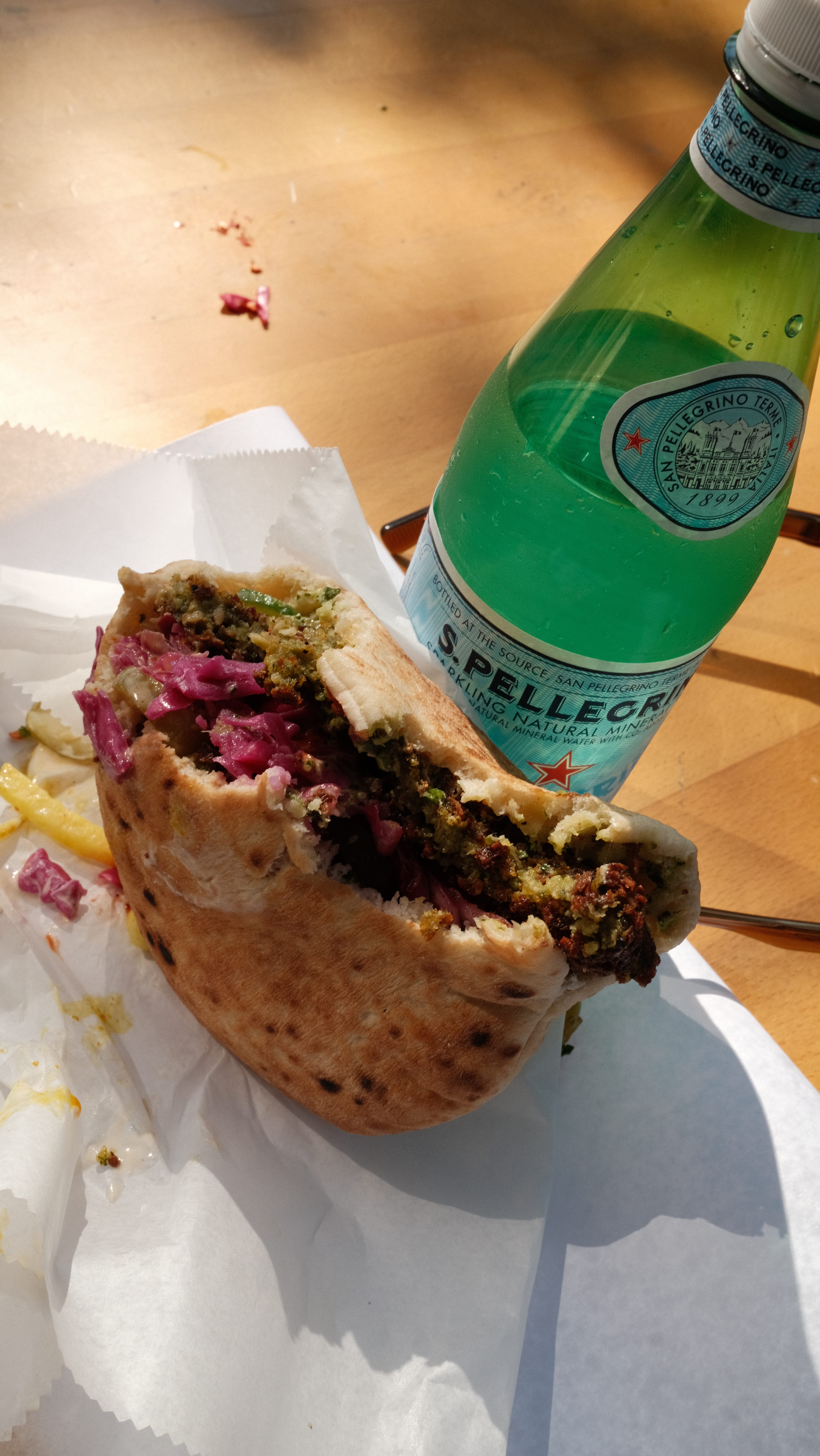 I docked at the corner of Driggs and S 2nd and shortly after had my hands wrapped around a warm pita packed with crunchy veg and freshly fried falafel. They do good work at Paolina. They care about their product, and it shows. We finished our sandwiches, and I posed the all-important question: “Pints or coffee?” There’s no wrong answer. Jon chose pints. Good man.